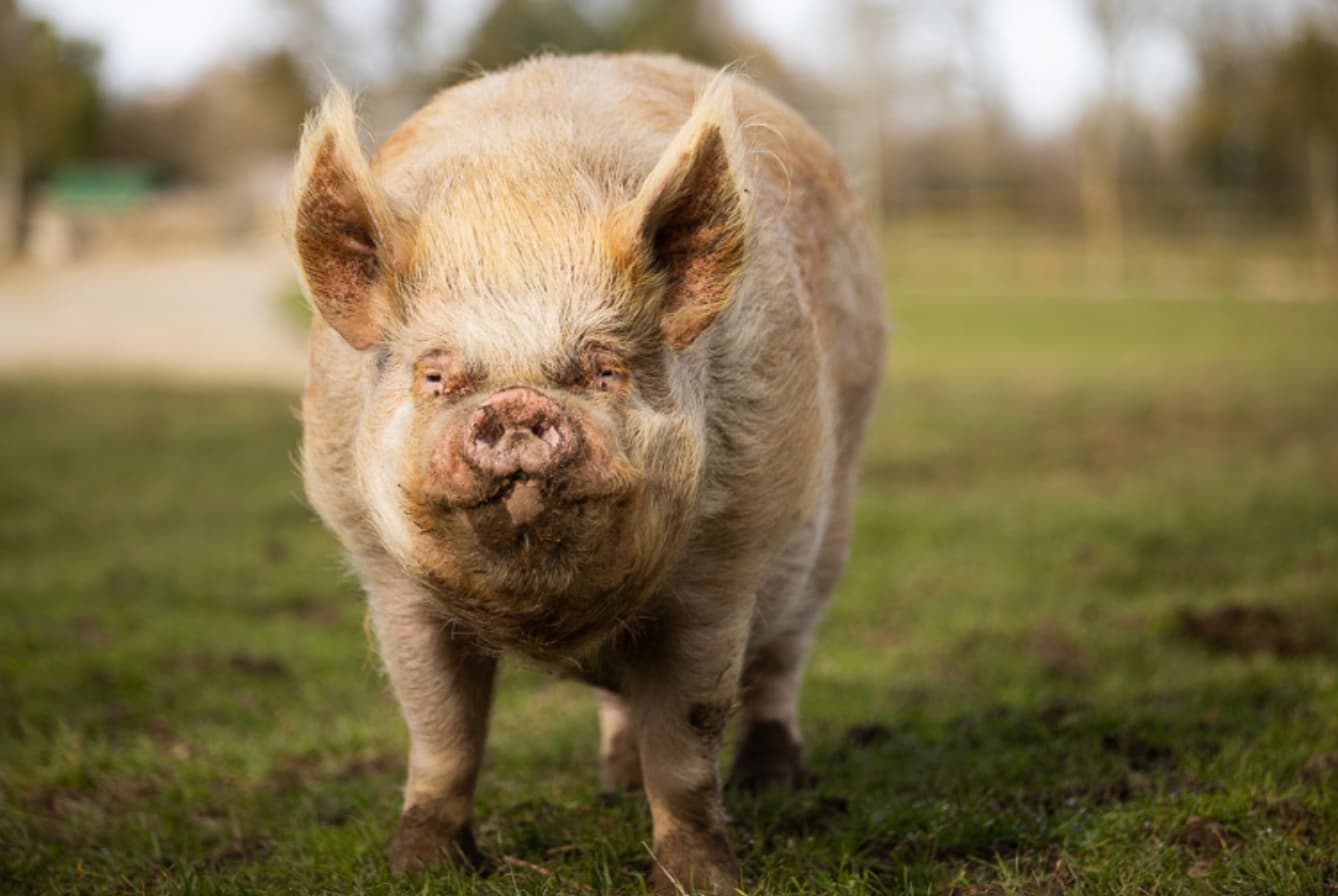 Heston est un cochon de ferme au caractère exceptionnel. Affectueux et câlin, il vit au Refuge depuis près de 10 ans. Il y a été amené après qu'un couple d'éleveurs ait contacté le refuge pour le sauver. Sensibles aux conditions difficiles imposées aux animaux dans l’élevage intensif, ces agriculteurs avaient choisi une alternative en élevant leurs cochons en semi-liberté sur un terrain de plus de 1,5 hectare. Ils ont cependant découvert que le cochon est un animal intelligent, affectueux et attachant. À l’idée de voir leurs animaux partir à l’abattage, ils ont ressenti une profonde remise en question, qui les a conduits à cesser leur activité et à renoncer à la consommation de viande. C’est Heston qui a été à l'origine de cette transformation.