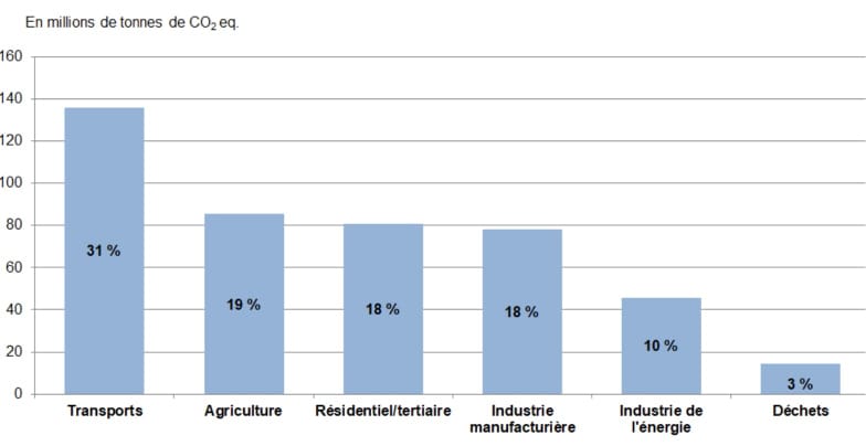 Répartition sectorielle des émissions de gaz à effet de serre en France en 2019.
